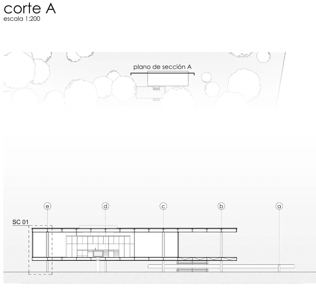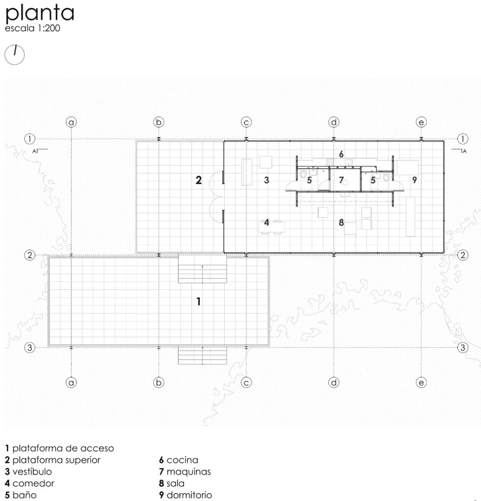 La casa Farnsworth destaca por su núcleo exento que organiza y separa los espacios técnicos de los habitables. Este núcleo, único elemento opaco en una estructura predominantemente de vidrio, permite una distribución flexible de los espacios vivibles, promoviendo una interacción fluida con el entorno mientras mantiene la privacidad de áreas funcionales esenciales como la cocina y los baños.
